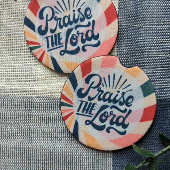 Christian Car Coasters: Praise the Lord Neoprene Cup Holder Protectors (Set of 2)