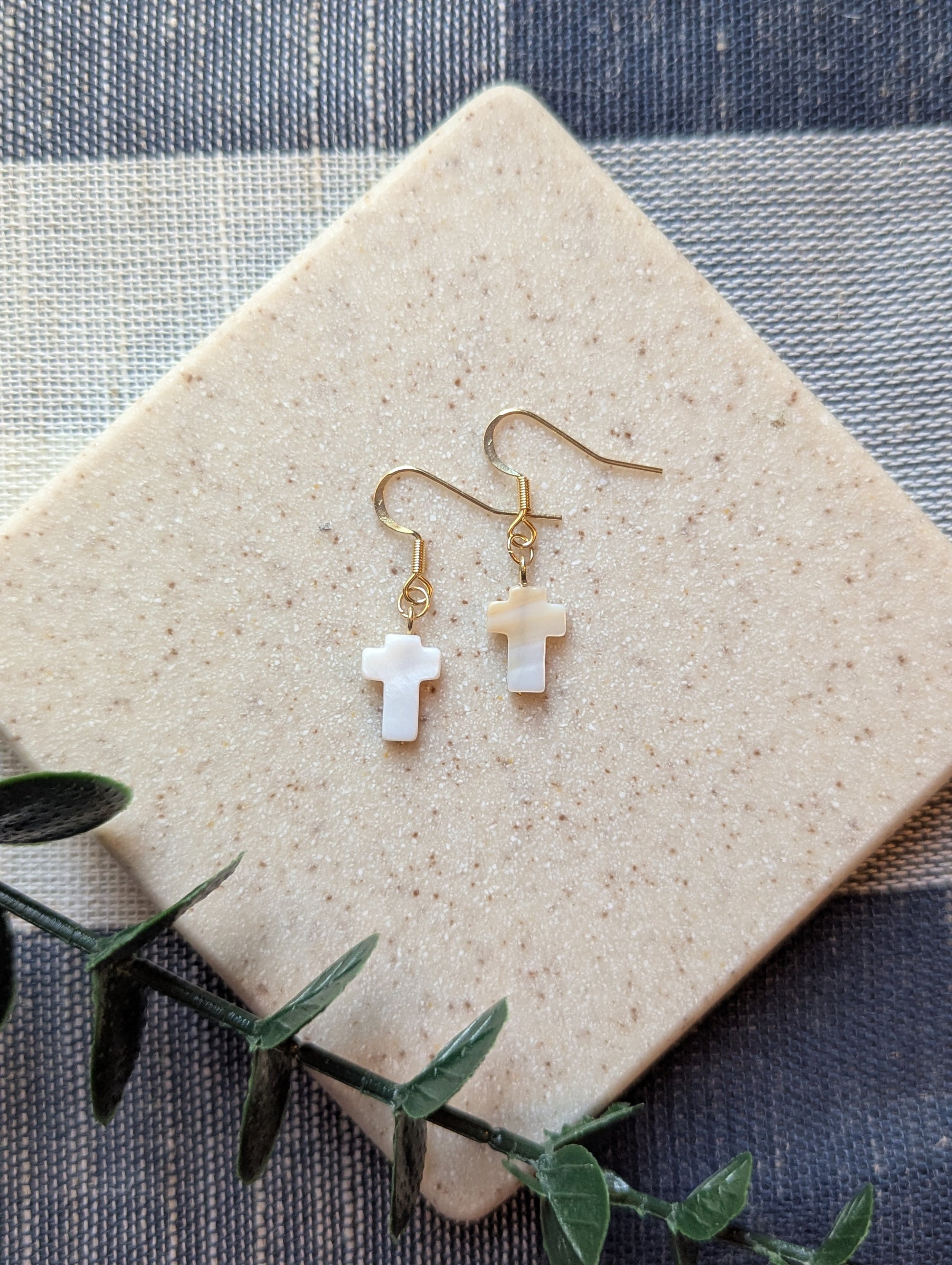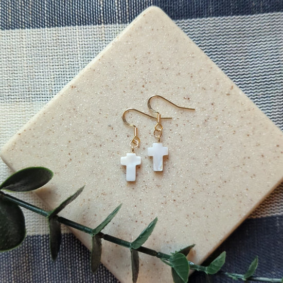 Dainty Shell Cross Earrings | Freshwater Shell with Gold-Filled Hooks | Christian Gift for Her | Lightweight & Elegant Faith Jewelry