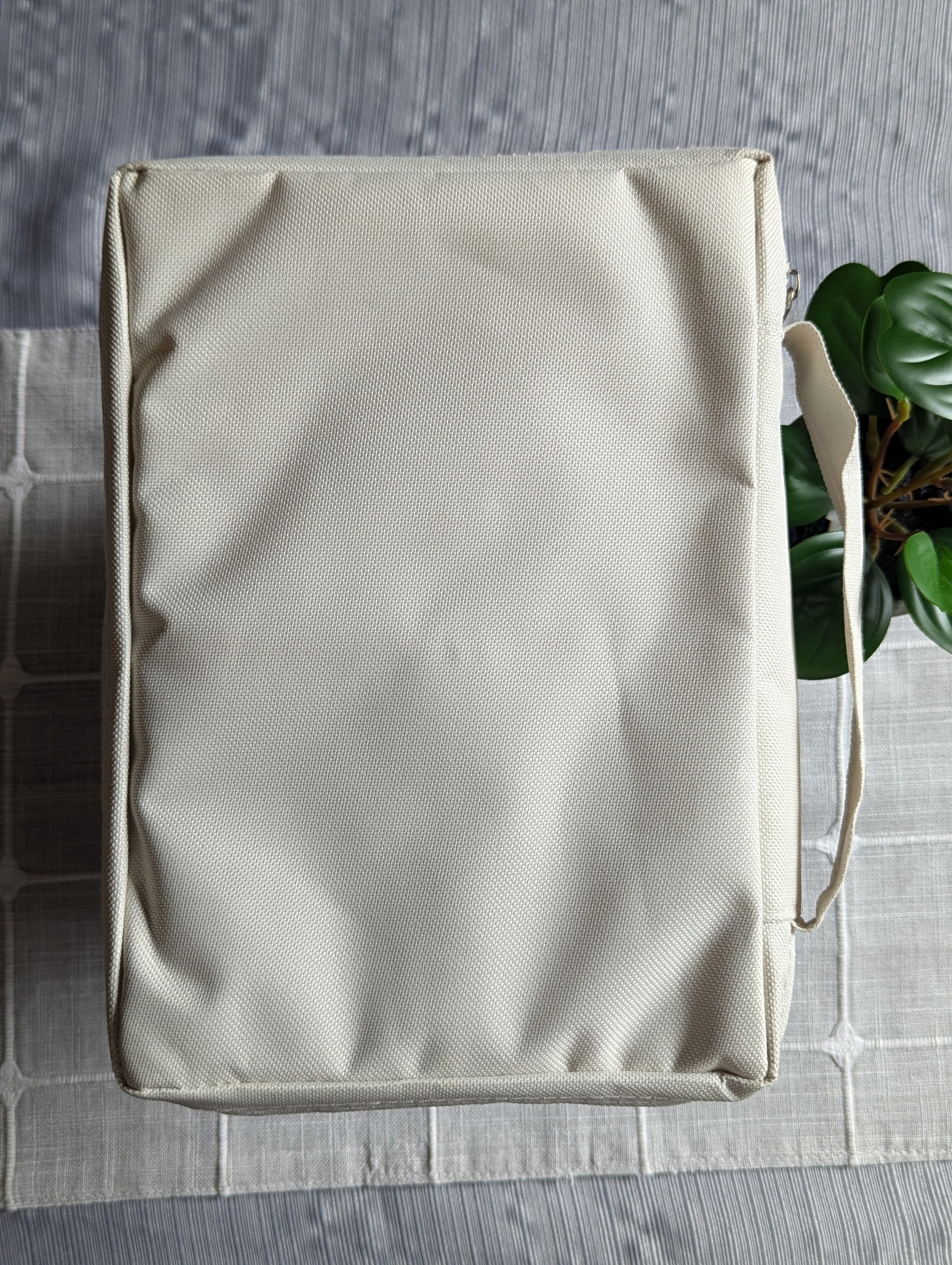 Features: Zipper closure, carry handle, inner pockets, pen loop