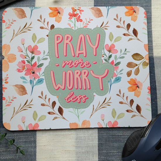 Pray More Worry Less | Floral | Faux Stitch | Christian | Faith | Mouse Pad