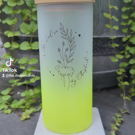 Psalm 23 The Lord is my Shepherd | Yellow Ombre | Bamboo Lid | Glass Cup