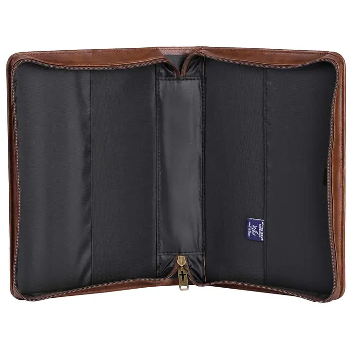 ~This stunning brown Bible case is made from polyurethane giving it a durable, leather like feel.